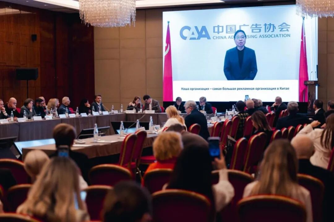 张会长在致辞中介绍了中广协的基本情况,分享了中国广告市场的最新动态。他提到,“2024年中国广告市场规模达1.5万亿人民币(约2000亿美金),预计2025年将实现10%的增长。其中互联网广告占比85%,成为拉动中国广告业持续发展的主要动力。这一趋势为行业带来了全新发展理念与转型思路,也乐于与国际同行分享这些成果”。他还表示,中广协10月底在北京成功举办第32届中国国际广告节(CIAF)和第34届亚洲广告大会(AdAsia),吸引32个国家和地区的行业代表齐聚北京,并特别感谢了俄罗斯行业同仁的到场参与和支持。近几年中广协与RACA保持友好交流,了解到俄罗斯广告行业发展迅速,对中国商品有着旺盛需求,中俄在品牌建设和广告服务方面合作空间广阔,期待与RACA进一步加强交流,推进中俄广告领域深度合作。