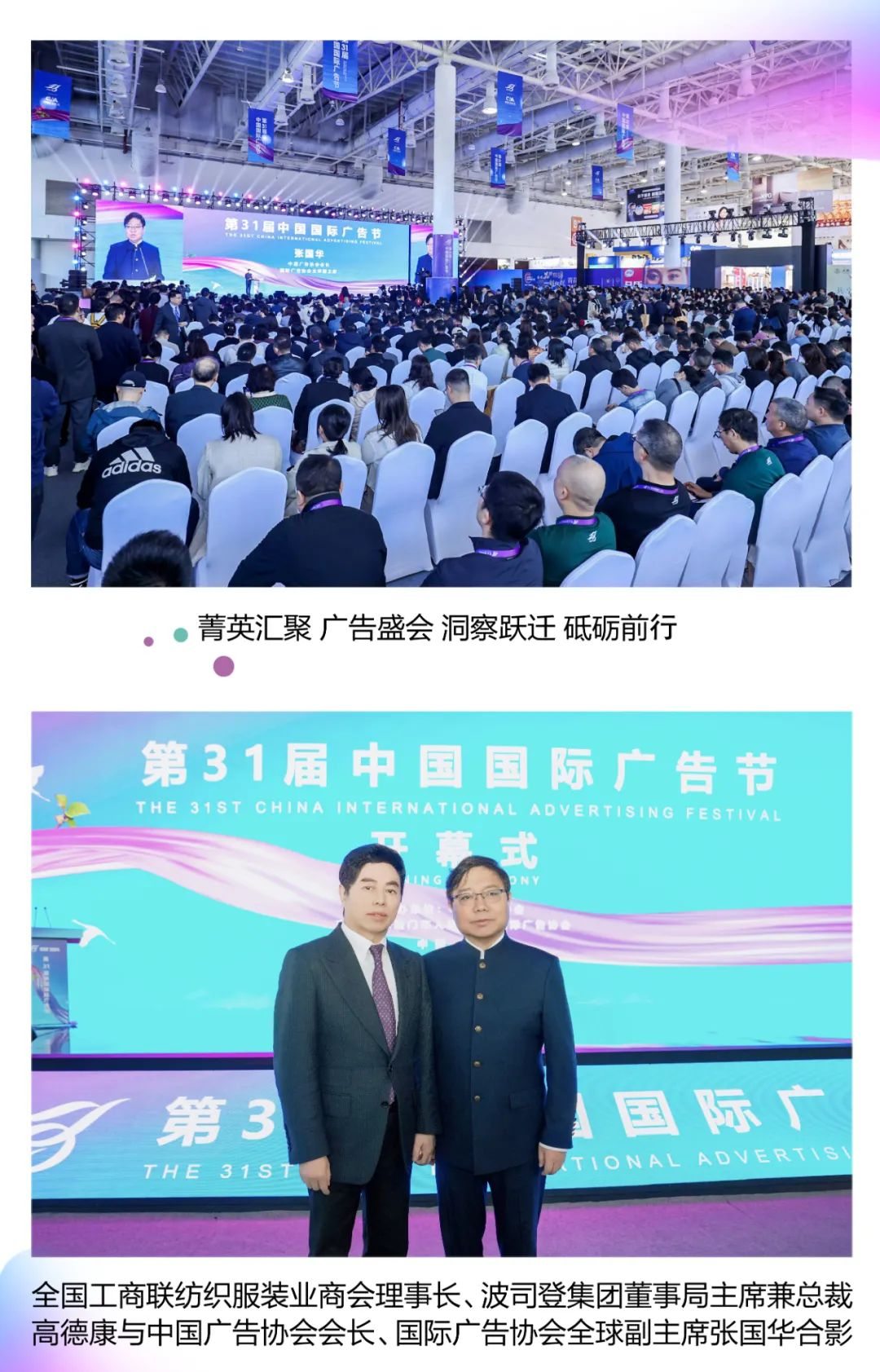 全国工商联纺织服装业商会理事长、波司登集团董事局主席兼总裁高德康参加广告节活动。并在主论坛上发表《品牌引领,温暖美好生活》主题演讲,分享了波司登在瞬息万变的营销环境中,探索品牌价值跃迁、温暖人们美好生活的实践经验和创新路径,为行业带来深刻洞察与启迪。
